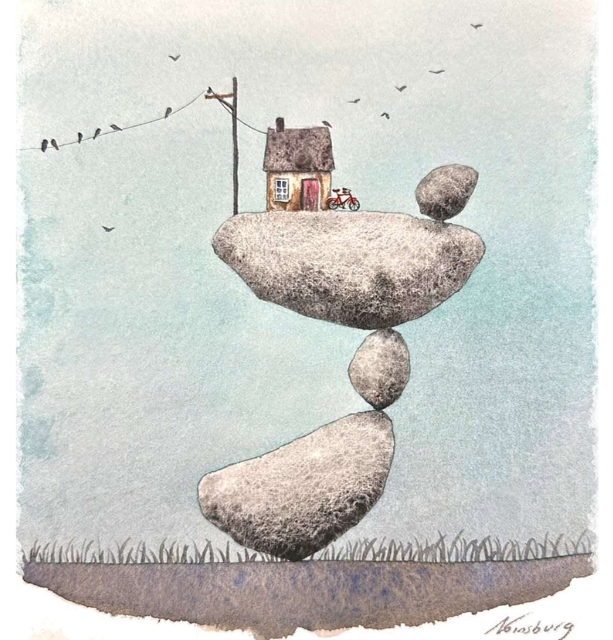 He uses an illustrative approach that combines realism and a more stylistic aesthetic. Allan enjoys bending and breaking the laws of physics to invite the viewer to wonder and connect with the possibilities the stones can capture.